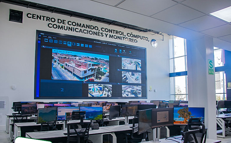 • Central de monitoreo: Un centro de operaciones con pantallas gigantes (videowall) y estaciones de trabajo para los operadores.
