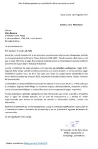 Solicitud de rectificaciónTanto en su carta personal como en el comunicado de EsSalud, Acho Mego rechaza "cualquier insinuación que afecte mi honor e integridad profesional". Ha exigido una rectificación o aclaración inmediata de la información inexacta por parte del programa de televisión y sus plataformas digitales. Los documentos adjuntos sirven como evidencia para su solicitud.