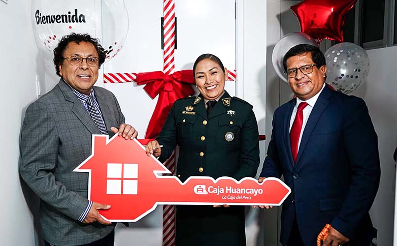 En el marco de su compromiso de contribuir a los Objetivos de Desarrollo Sostenible (ODS), promoviendo la seguridad ciudadana, la equidad y el bienestar social, Caja Huancayo hizo entrega de un departamento a la suboficial de segunda Verónica Gargate Coaguila, de la Dirección de Aviación Policial, ganadora del concurso “Policía Soy”.